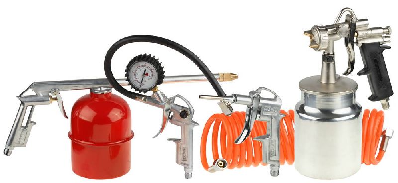 Набор качественного пневмоинструмента. Используется для нанесения лакокрасочных и антикоррозионных работ, а также в комплекте пистолет для продувки и подкачки шин.