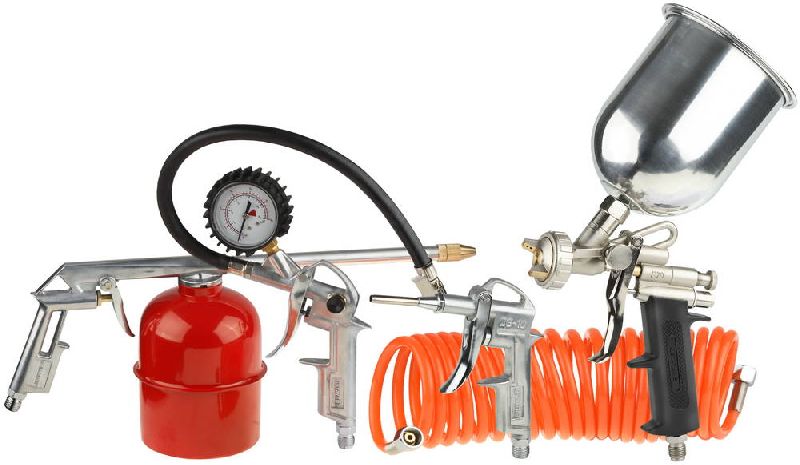 Набор качественного пневмоинструмента. Используется для нанесения лакокрасочных и антикоррозионных работ, а также в комплекте пистолет для продувки и подкачки шин.