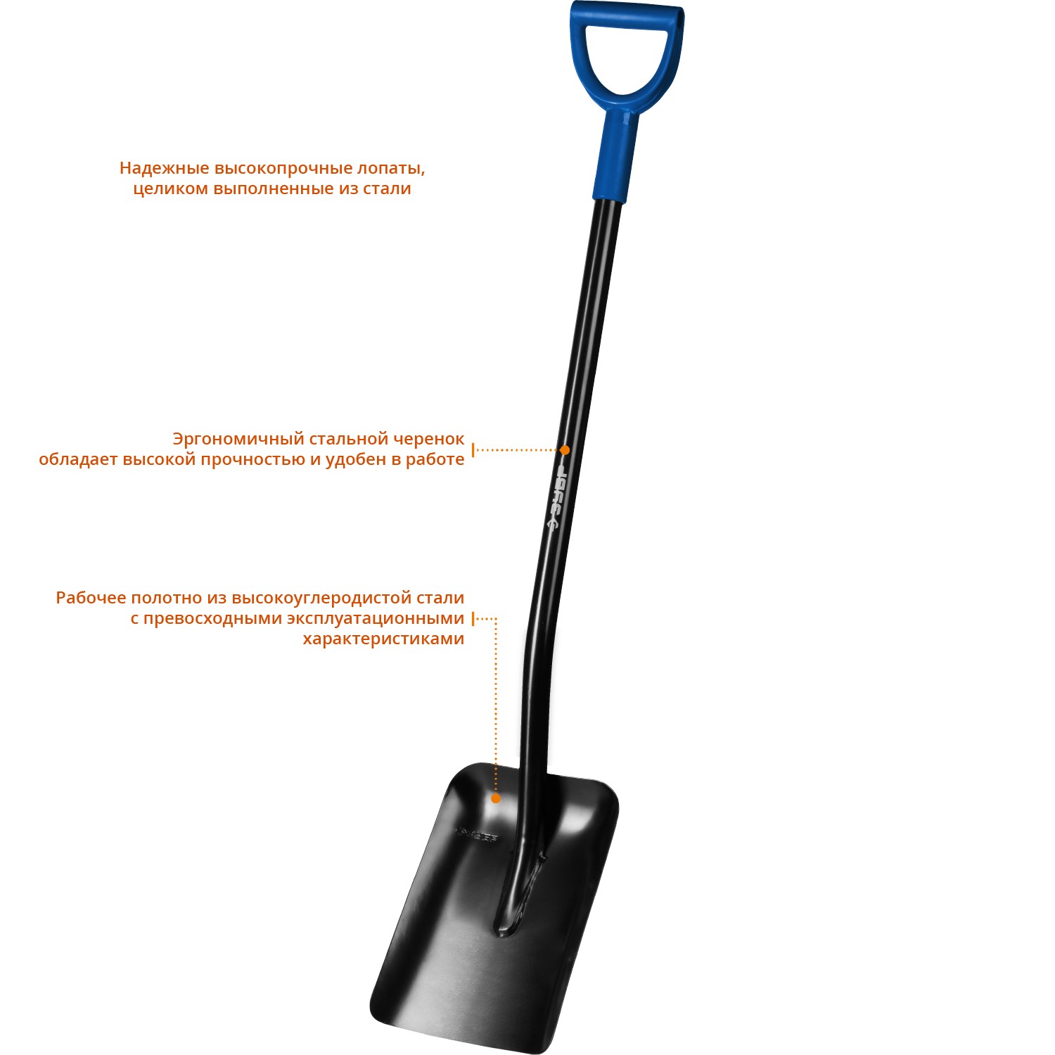Совковая лопата оптимальна в работе с сыпучими материалами, а также для приготовления различных смесей.