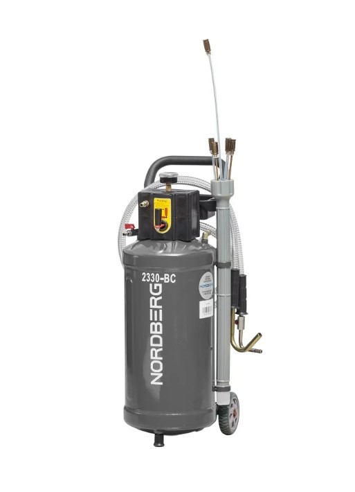 Пневматическая установка для сбора масла NORDBERG 30 л, серая 2330G - компактная, маневренная и простая в эксплуатации установка для замены масла удаляет отработанное масло и другие жидкости из любого транспортного средства при помощи вентури-вакуумной вытяжной системы