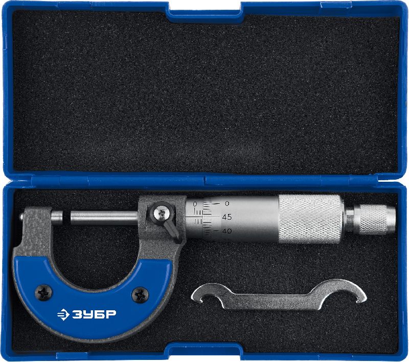 Микрометр ЗУБР Профессионал гладкий механический МК 25 предназначен для точных измерений в диапазоне от 0 до 25 мм. Он обеспечивает высокую точность и удобство в использовании благодаря четкой шкале и надежной конструкции. Прочный корпус обеспечивает долговечность прибора.