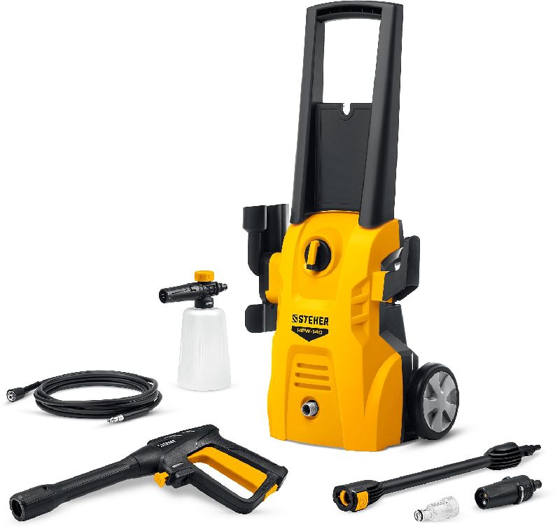 Мойка высокого давления STEHER HPW-140 создана для формирования струи воды под высоким давлением, которая применяется для очистки автомобилей, велосипедов и других транспортных средств на колёсах, а также садового инвентаря, наружных стен и уличных покрытий.