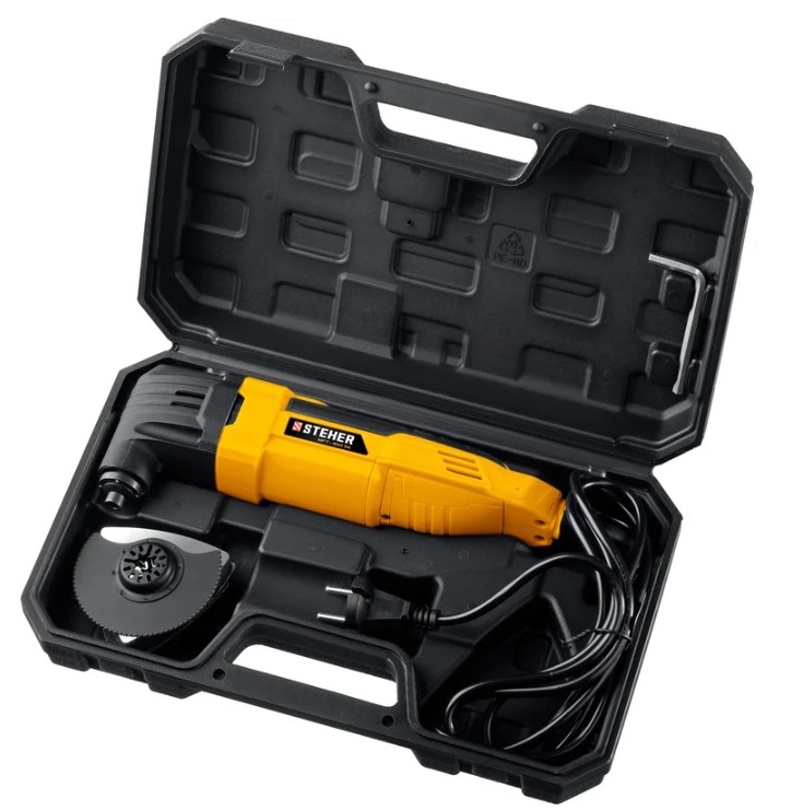 Многофункциональное устройство для разнообразных строительных задач, таких как резка и шлифовка, особенно в сложных и труднодоступных условиях. Широкий диапазон регулировки частоты и значительный угол колебаний в 3 градуса обеспечивают высокую эффективность при работе с различными материалами. В комплект поставки входит базовый набор насадок для немедленного начала работы, а также удобный кейс для хранения и транспортировки инструмента.