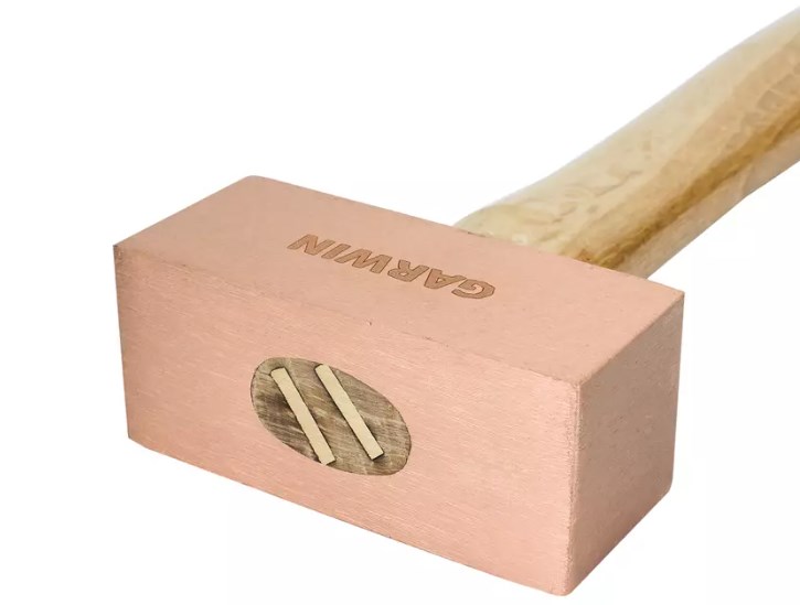 Медный молоток имеет меньшую отдачу относительно стальных молотков, а также не оставляет на стальных деталях вмятин. Резиновое кольцо на месте крепления рукоятки к бойку защищает рукоятку от случайных ударов.