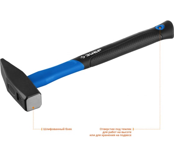 Слесарный молоток 800 г с фибергласовой рукояткой ЗУБР Фиберглас позволяет работать в мастерской или на строительной площадке.