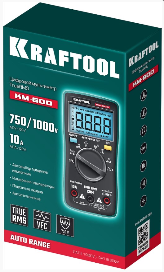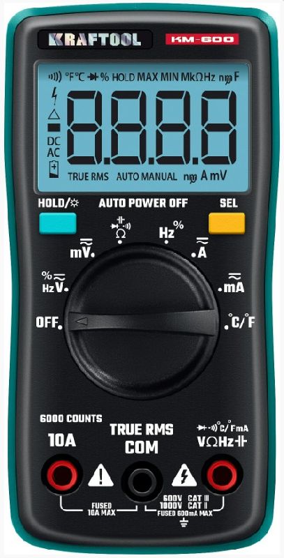 Постоянное напряжение (DCV), MAX / MIN 1000В / 60мВ