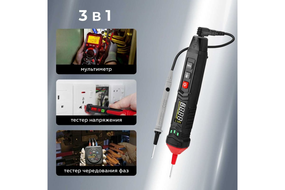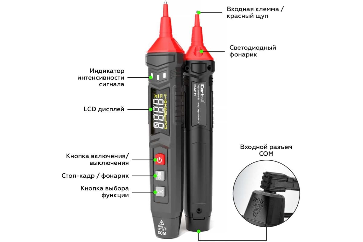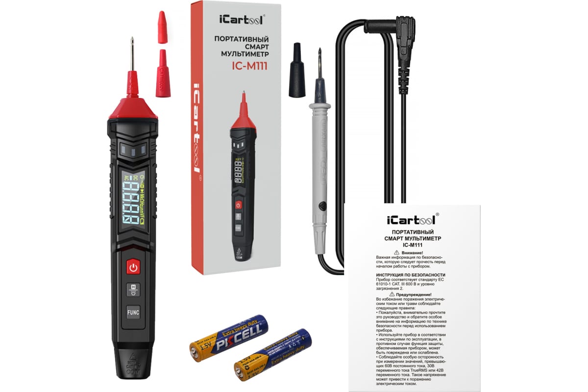 Портативный смарт мультиметр iCartool IC-M111 с технологией измерения значений TrueRMS и автоматическим выбором режима измерений. Имеет малый вес и оригинальное исполнение в форме ручки. Корпус мультиметра выполнен из ударопрочного ABS-пластика, яркий светодиодный фонарик обеспечивает подсветку места измерения, а цветной ЖК-дисплей отображает полярность, измеряемый параметр и его значение. Прибор имеет звуковую и световую индикацию.