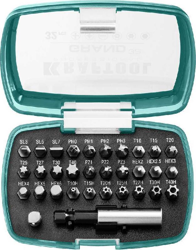 Набор бит с магнитным адаптером Kraftool 26083-H32 изготовлен из высокопрочной стали Cr-Mo, что позволяет использовать их в профессиональной деятельности на строительных площадках. Конструкция наконечника включает точную геометрию, насечки и закаленные грани для повышения прочности в тяжелых условиях. Магнитный держатель надежно фиксирует оснастку в патроне, обеспечивая безопасность работы.