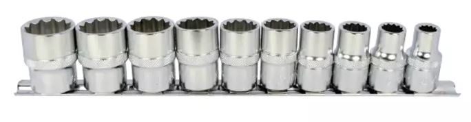 Набор торцевых головок Licota TBS-22005 из хром-ванадиевой стали предназначен для ручного монтажа/демонтажа резьбового крепежа. Набор из 10 предметов на металлическом держателе-линейке.