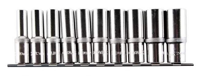 Головки торцевые глубокие (10; 12; 13; 14; 16; 17; 18; 19; 22; 24 мм) 10 шт.