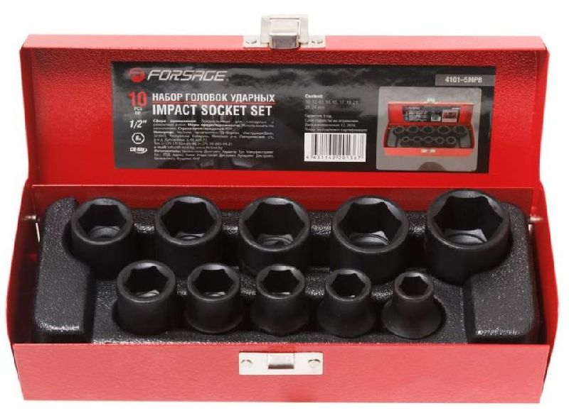 Набор FORSAGE из 10 торцевых 6-гранных ударных головок 1/2" - незаменимый инструмент для профессионалов и любителей ремонта автомобилей.