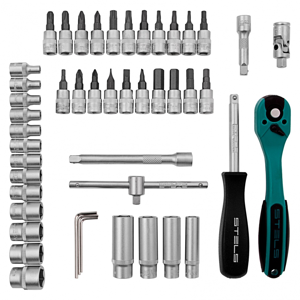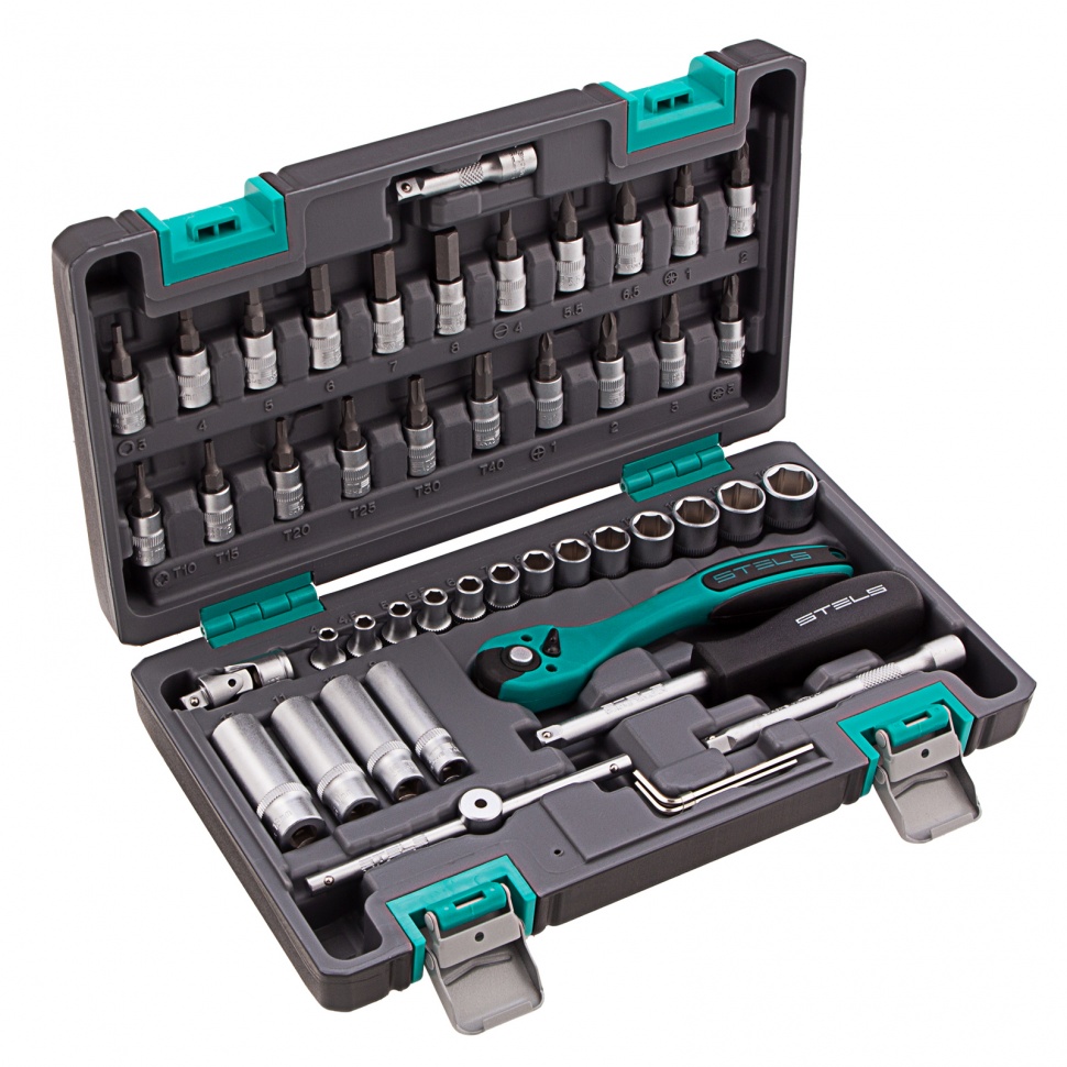 Набор инструментов Stels 14099 в прочном кейсе содержит 47 предметов с присоединительным размером 1/4 дюйма из высококачественных сталей CrV и S2. Он идеально подходит для монтажа и демонтажа резьбовых соединений во время технического обслуживания и ремонта автомобиля, а также для выполнения различных бытовых работ. Набор будет полезен как автолюбителям, так и домашним мастерам.