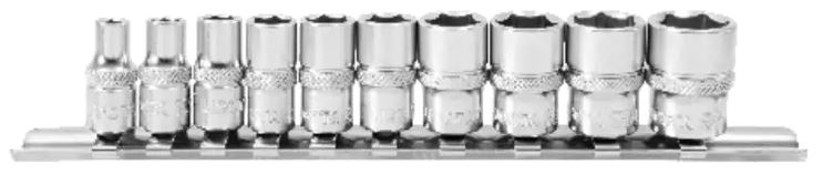 Набор торцевых головок Licota TBS-22101, изготовленных из хром-ванадиевой стали, идеально подходит для ручного монтажа и демонтажа резьбового крепежа. В наборе 10 предметов, удобно расположенных на металлическом держателе-линейке.