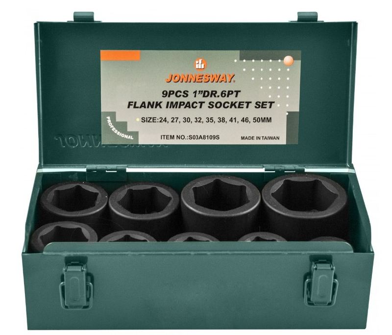 9 торцевых головок 1"DR: 24, 27, 30, 32, 35, 38, 41, 46, 50 мм.