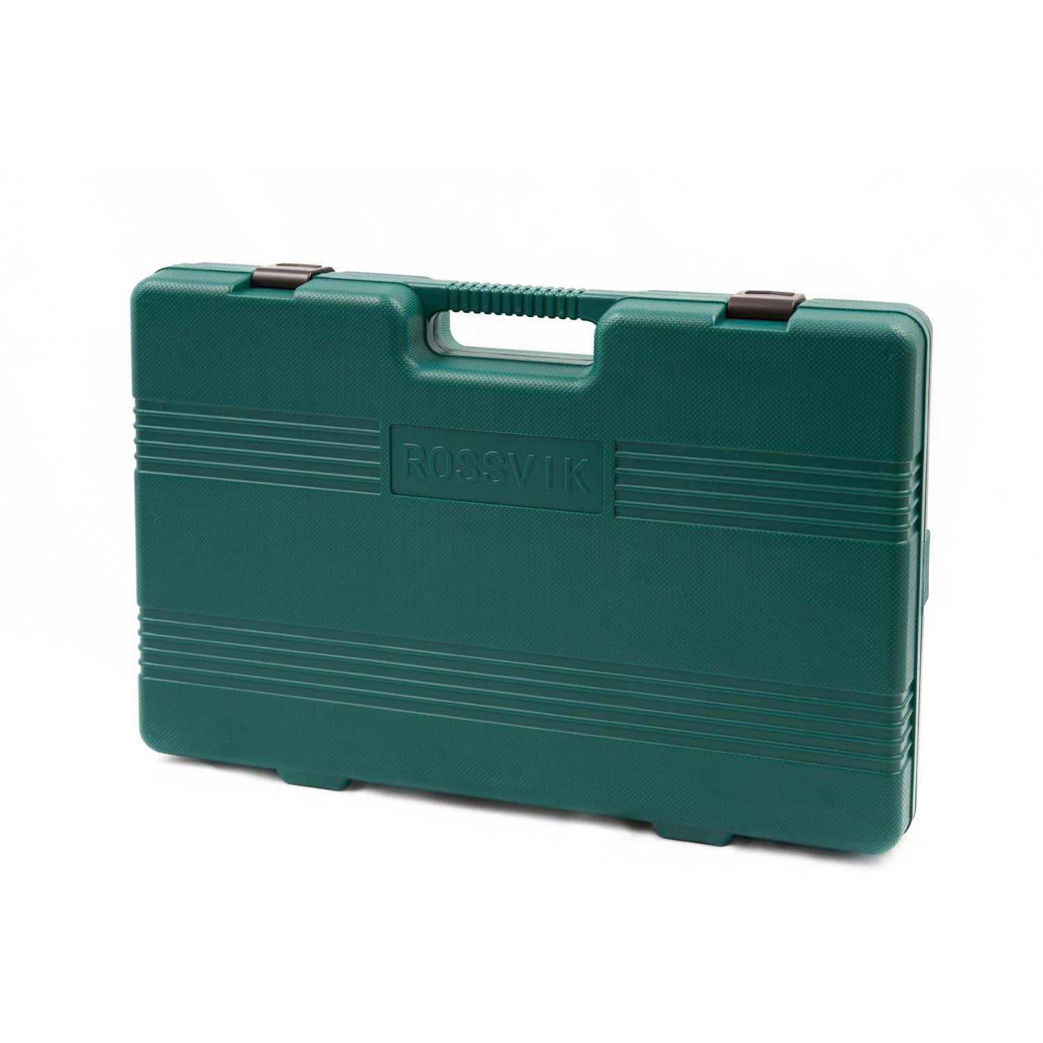 Пластиковый кейс с ручкой и застежками.