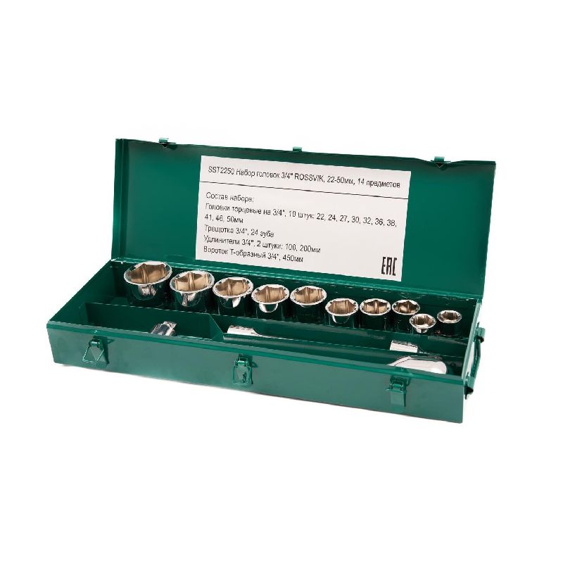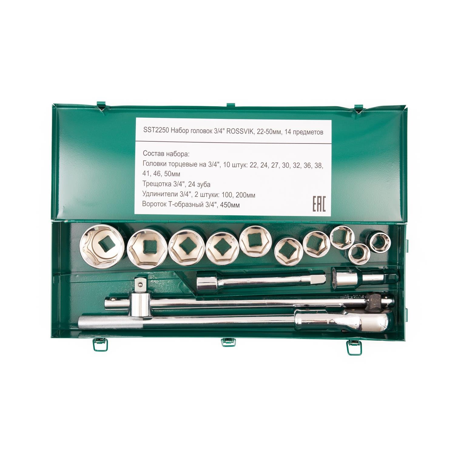 Головки торцевые на "3/4", мм: 22; 24; 27; 30;32; 36; 38; 41; 46; 50 - 10 шт;