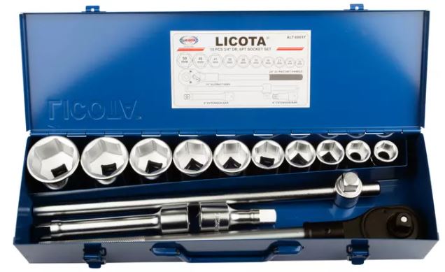 Набор торцевых головок 3/4", 6 шт., 22-50 мм, 15 шт. Licota ALT-6001F предназначен для ремонта грузовиков, тракторов, спецтехники и используется в промышленности, в том числе в станкостроении. Такой инструмент является стандартным для грузовых автосервисов, но также часто используется в обычных автомастерских в качестве "дежурного" набора. Головки на 3/4" применяются для сорванного закисшего крепежа благодаря своей способности развивать большое усилие при работе. Кроме того, они могут понадобиться для ремонта внедорожников и других подобных автомобилей.