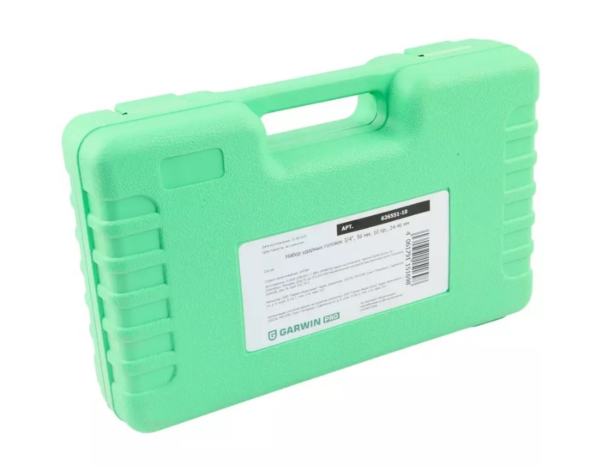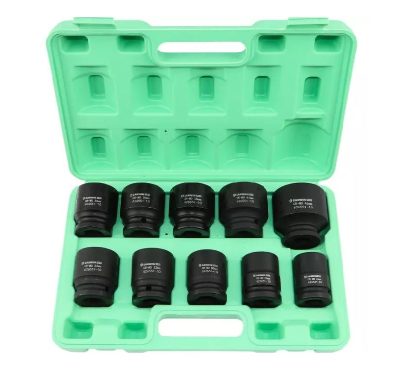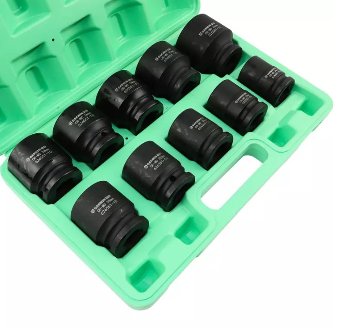 Набор ударных головок GARWIN PRO 626551-10 из хром-молибденовой стали разработан для демонтажа резьбового крепежа. Чаще всего используется в работе с ударным гайковертом. В наборе имеется 10 стандартных шестигранников, диаметр которых варьируется от 24 до 46 мм. Размер привода составляет 3/4 дюйма (19,05 мм), а длина головки - 56 мм. Набор предназначен для сборки и разборки промышленного оборудования и узлов автомобиля, где требуется использование соответствующего типа головки для срыва "закисшего" крепежа.