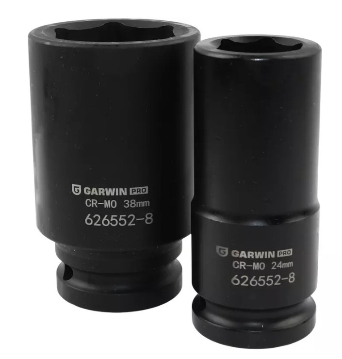 Головки торцевые ударные глубокие 17, 19, 22, 24, 27, 32, 36, 38 мм