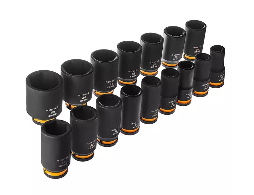 Набор головок торцевых ударных глубоких 17-50 мм (3/4") 6 гр, 16 предм, мет.кейс RUNTEC