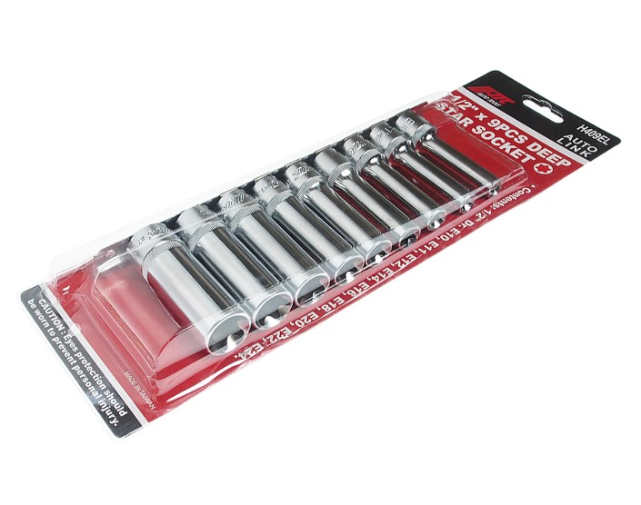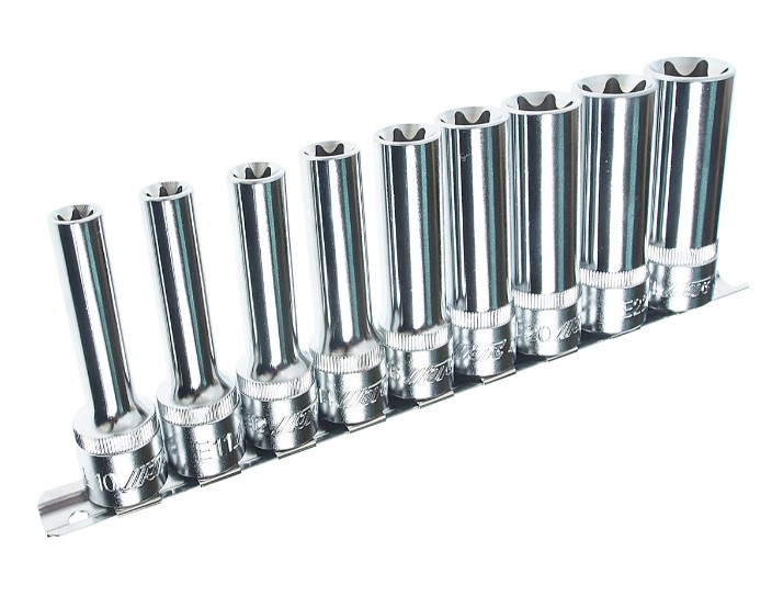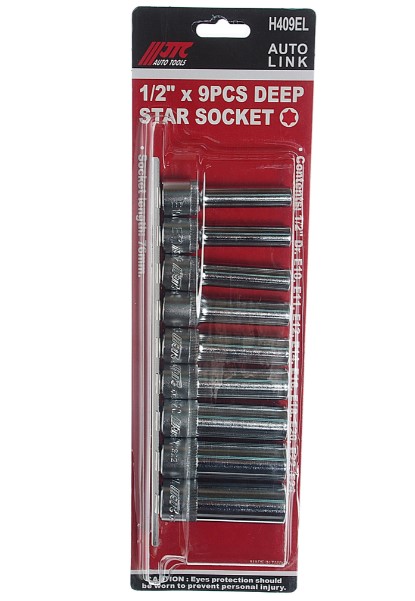 Набор головок торцевых глубоких E10-E24 (1/2") 9 предм на линейке JTC