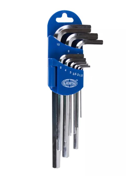 Набор экстра длинных шестигранных ключей Licota 2HW30091DPM состоит из 9 ключей с размерами от 1,5 до 10 мм, предназначенных для работы с крепежом с внутренним Hex-профилем. Подходит для бытового использования, сборки мебели, мелкого ремонта, а также в автомастерских и сервисах по ремонту техники.