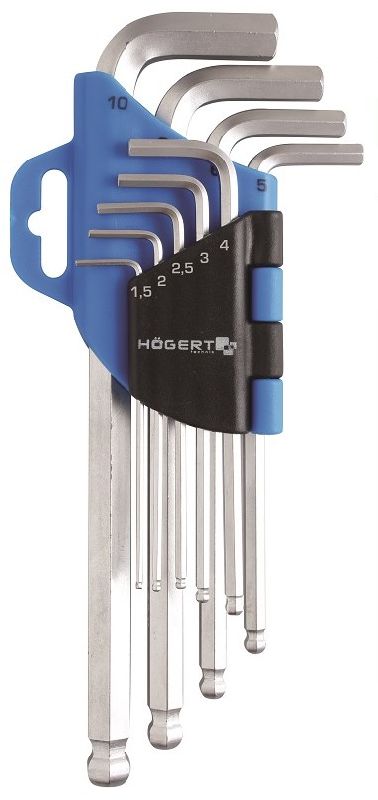 Набор удлиненных шестигранных Г-образных ключей HOEGERT TECHNIK с шаровым наконечником Crv HT1W804 выполнен из высококачественной хромванадиевой стали. Модель оснащена специальным овальным наконечником, позволяющим использовать ключи под углом до 30°.