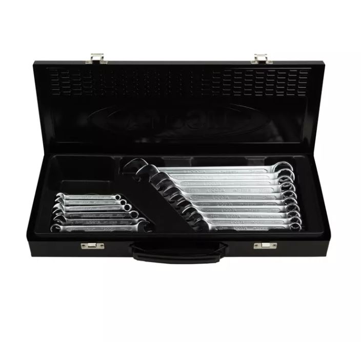 Набор комбинированных ключей Licota AWT-ERSK06 из 16 предметов (6-24 мм) в металлическом кейсе идеально подходит для монтажа и демонтажа резьбовых соединений, его активно используют в производстве и автомастерских. Ключи имеют накидной и рожковый профили, изготовлены из прочного сплава хрома и ванадия, и покрыты хромом для защиты от коррозии. Компактный металлический кейс удобно транспортировать и защищает инструменты от загрязнений, обеспечивая порядок.