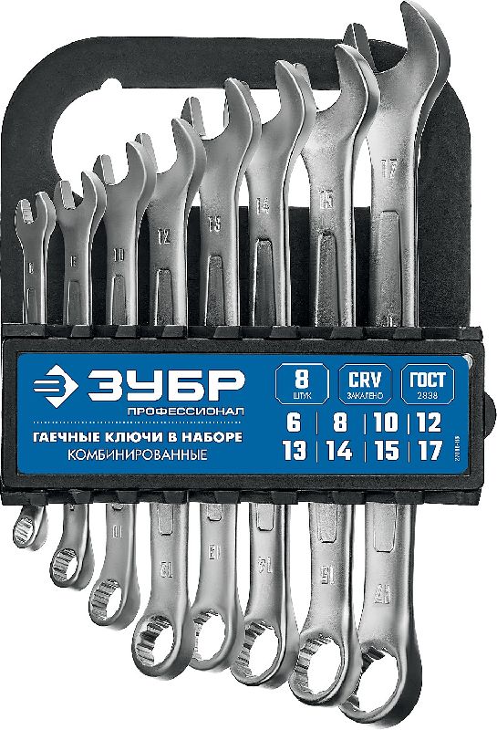 Набор комбинированных гаечных ключей 8 шт 6 - 17 мм Зубр значительно упрощает работу с крепежом.