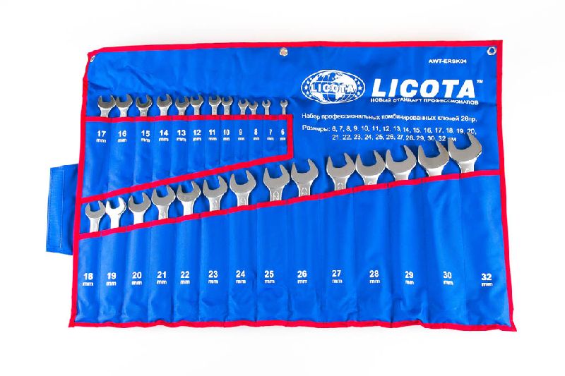 Набор Licota AWT-ERSK04 состоит из 26 комбинированных ключей, идеально подходящих как для профессионалов, так и для домашних нужд, включая автомобили и слесарные работы. Ключи имеют рожковый и накидной профили для удобства использования. Изготовленные из хром-ванадиевого сплава, они обладают высокой прочностью и защищены хромированным покрытием от коррозии. Комплект удобно хранить и переносить в тряпочном чехле, в котором каждый ключ размещён в отдельной секции. Чехол устойчив к загрязнениям и надежно удерживает ключи.