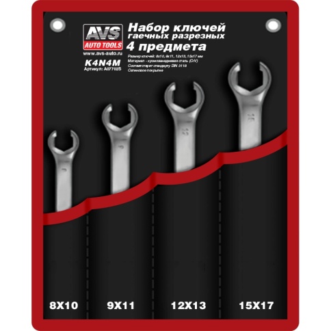 Размеры ключей: 8х10, 9х11, 12х13, 15х17 мм