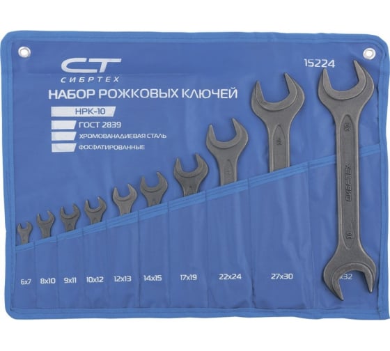 Набор рожковых ключей СИБРТЕХ размером от 6 до 32 мм включает 10 предметов. Ключи изготовлены из высокопрочной стали и имеют фосфатированное покрытие для защиты от коррозии. Эти инструменты идеально подходят для демонтажа любых шестигранных креплений. Для удобного хранения ключи поставляются в специальном подвесе.