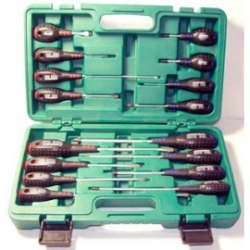 Набор отверток FULL STAR Jonnesway D04PP16S включает 16 инструментов: восемь отверток с прямым профилем и восемь с крестовой головкой. Инструменты различаются по цветным вставкам на корпусе рукоятки, что помогает легко их идентифицировать. Каждая отвертка имеет маркировку и отверстие для подвешивания.