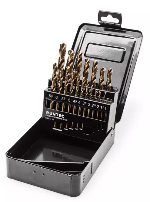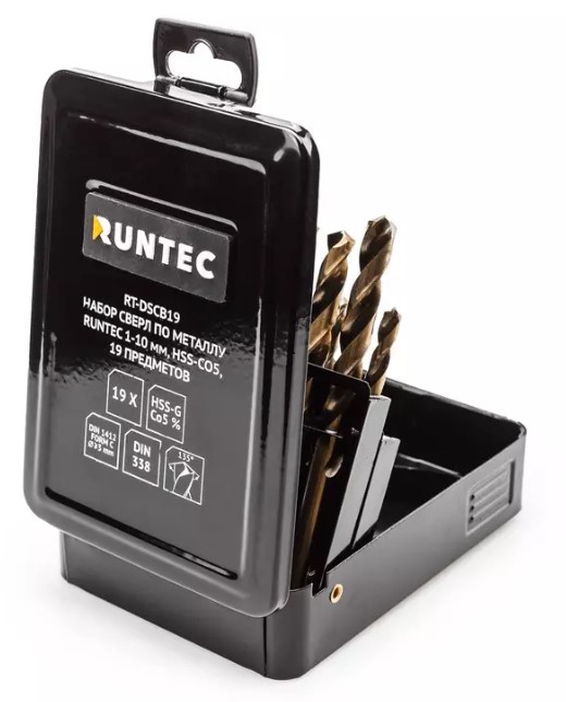 Спиральные сверла с цилиндрическим хвостовиком из быстрорежущей стали HSS-Co5 с содержанием кобальта 5% предназначены для сверления отверстий в различных материалах, включая углеродистую и легированную сталь, чугун, цветные металлы и конструкционные материалы с пределом прочности до 1100 Н/мм². Набор из 19 сверл с шагом 0.5 мм подходит для электроинструмента и сверлильных станков, включая ЧПУ. Поставляются в металлическом кейсе.