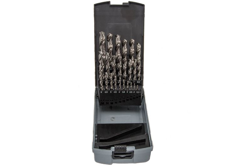Набор сверл Garwin GM-BS25C 1.0-13.0 х 0,5 мм включает 25 HSS-CO спиральных сверл с шлифованным профилем, предназначенных для сверления в низколегированных и легированных сталях, нержавейке, чугуне и других металлах с твердостью до 30 HRC. Сверла используются в сверлильных станках и ручных электро- и пневмоинструментах; предварительное центрование желательно.