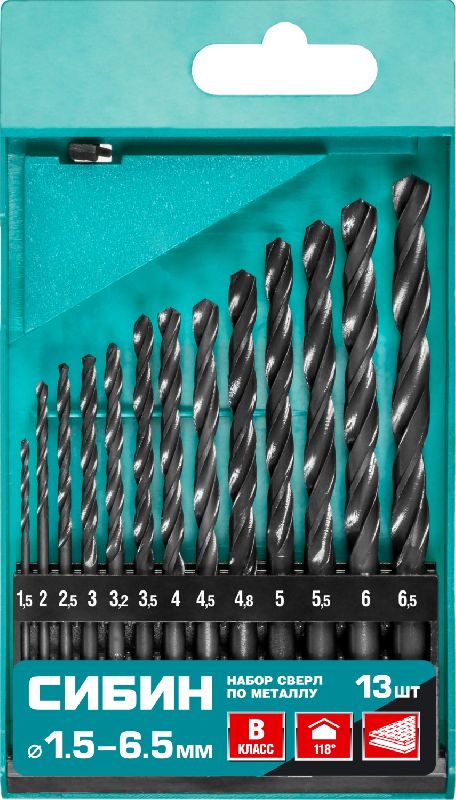 Набор сверл по металлу 1,5-6,5 мм (13 шт.) HSS, класс В СИБИН