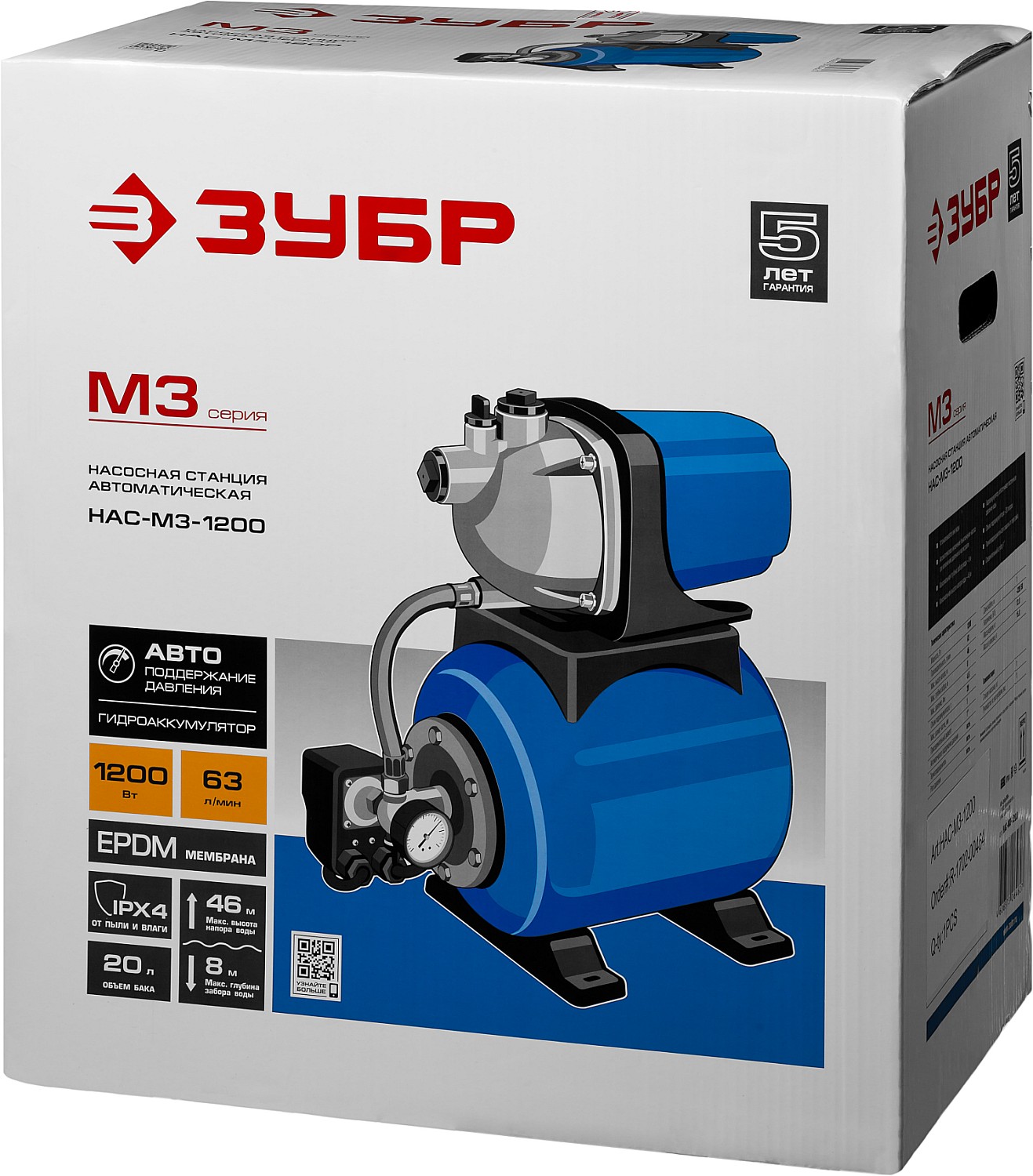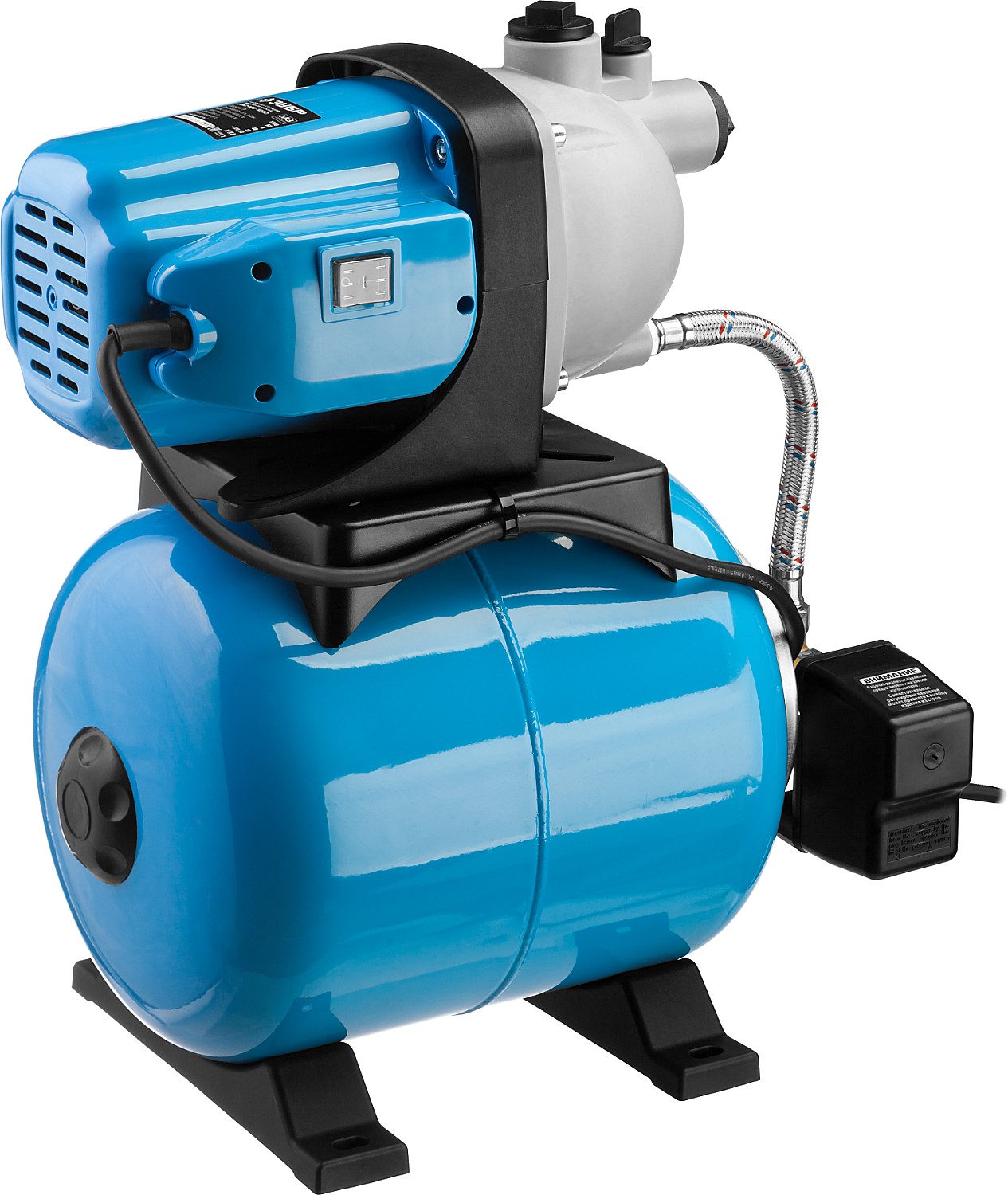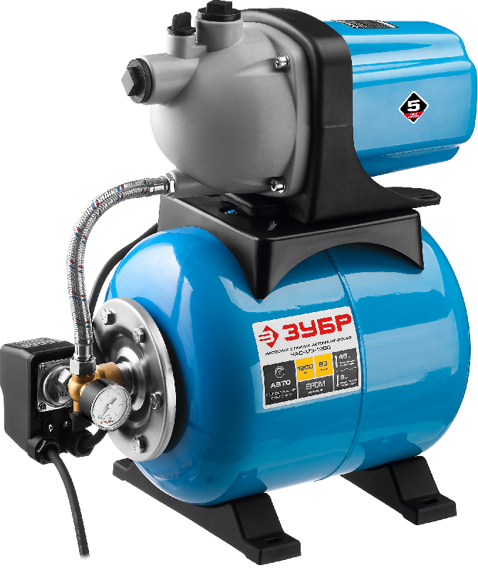 Объём гидроаккумулятора составляет 20 литров. Этого достаточно, чтобы обеспечить полноценный водоразбор и снизить частоту включений насоса. Это продлевает срок службы насоса и помогает экономить электроэнергию.