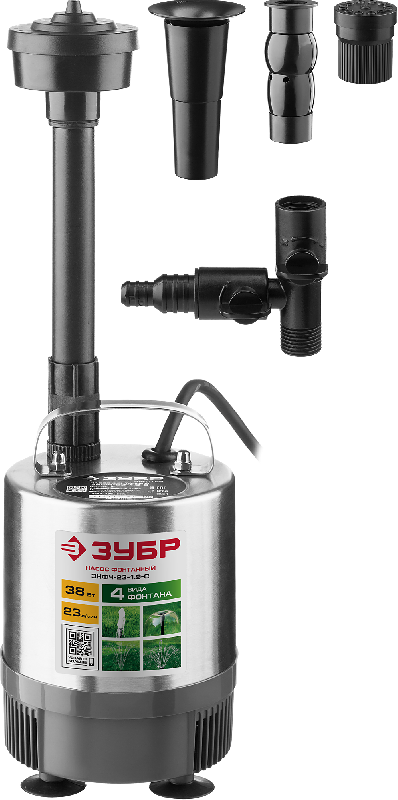 Фонтанный насос Зубр ЗНФЧ-23-1.9-С предназначен для декорирования искусственных водоемов. С его помощью можно создать разнообразные водные эффекты, такие как фонтаны с разными типами струй или водопады. В комплекте поставляются четыре насадки: колокольчик, гейзер, а также большой и малый каскады. Насос прост в обслуживании — достаточно периодически промывать установленный губчатый фильтр, защищающий механизм от загрязнений. Корпус устройства изготовлен из нержавеющей стали, что гарантирует его долговечность.