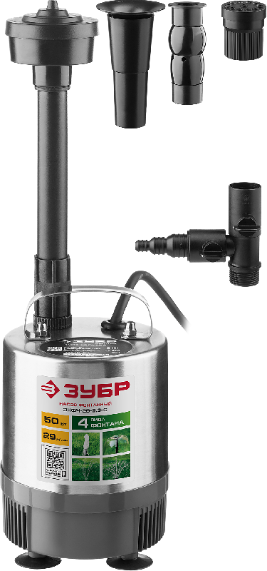 Фонтанный насос Зубр ЗНФЧ-29-2.3-С разработан для украшения прудов на приусадебных участках. С его помощью можно создавать фонтаны с различными типами струй и водопады. В комплект входят четыре насадки: колокольчик, гейзер, большой и малый каскады. Удлинительная трубка позволяет регулировать высоту фонтана. Насос прост в эксплуатации и не требует специального обслуживания. Корпус из нержавеющей стали обеспечивает долгий срок службы. Это идеальное решение для небольших и средних прудов. Насос оснащен фильтром, предотвращающим попадание загрязнений в механизм.