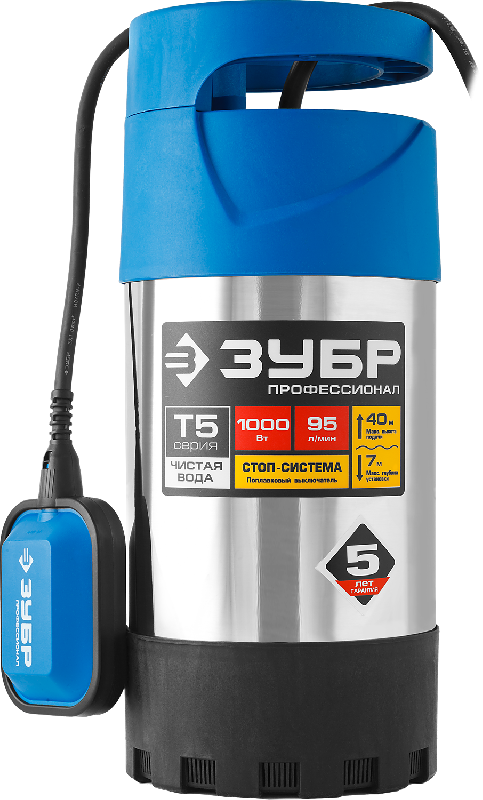 Насос погружной дренажный для чистой воды ЗУБР ПРОФЕССИОНАЛ НПЧ-Т5-1000-С — это устройство, которое автоматически перекачивает воду из резервуара и поднимает её на высоту.