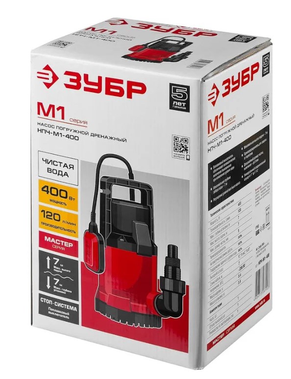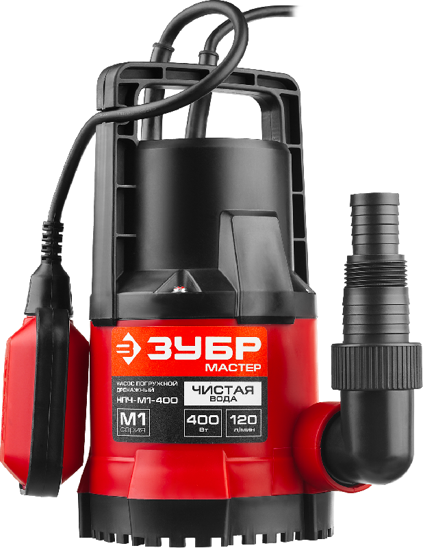 Насос для откачки чистой воды «Зубр МАСТЕР М1 НПЧ-М1-400» с производительностью 120 литров в минуту предназначен для осушения резервуаров и водоёмов. Он оснащён поплавковым выключателем, что делает его использование надёжным и безопасным. Термопредохранитель обеспечивает длительную эксплуатацию прибора.