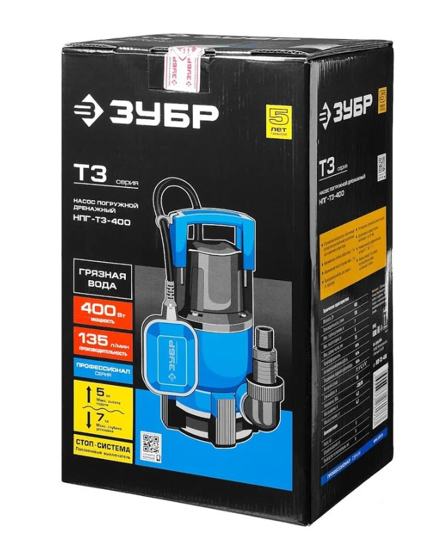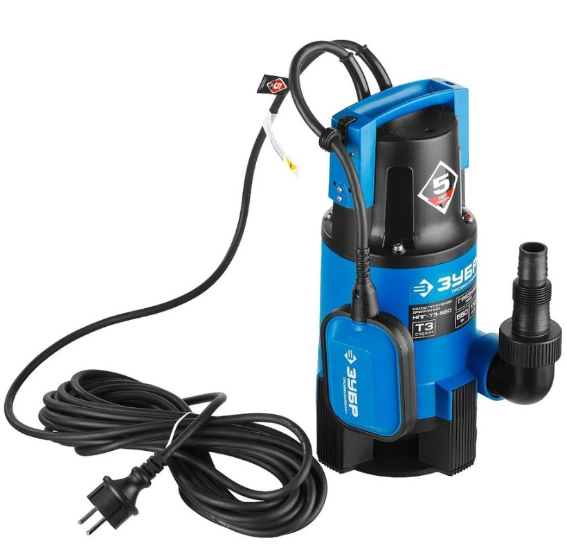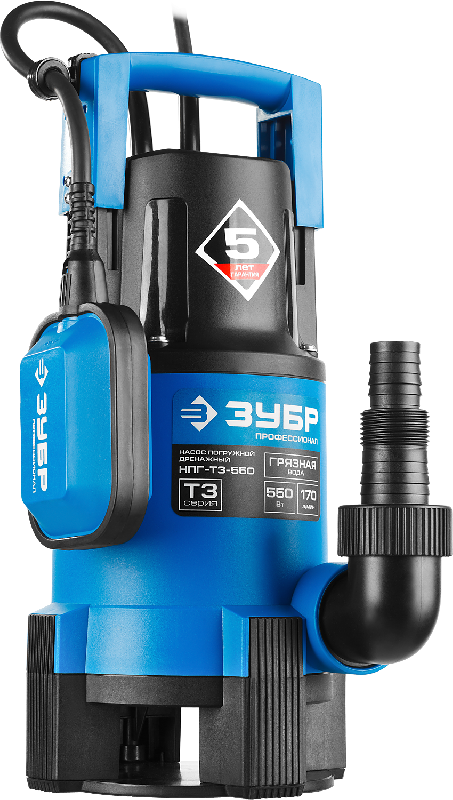 Погружной дренажный насос ЗУБР Профессионал Т3 НПГ-Т3-550 — это мощный инструмент для откачки воды с глубины до 7 метров. Он может работать как с чистой водой, так и с водой, содержащей различные примеси.