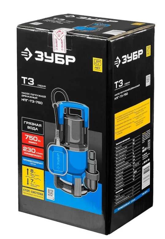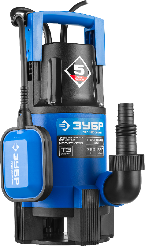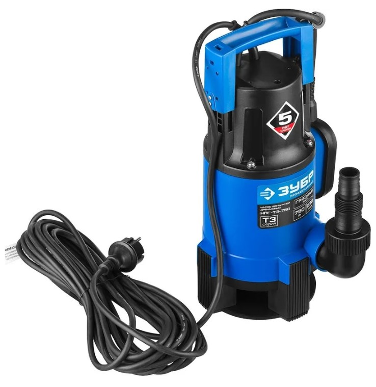 Насос погружной дренажный для грязной воды ЗУБР Профессионал Т3 НПГ-Т3-750 предназначен для осушения бассейнов, затопленных помещений и подачи воды из колодцев. Его производительность составляет 230 литров в минуту.