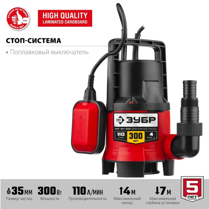 Насос способен перекачивать как чистую, так и загрязнённую воду с размером частиц включений до 35 мм.