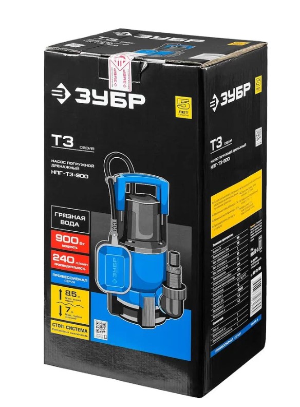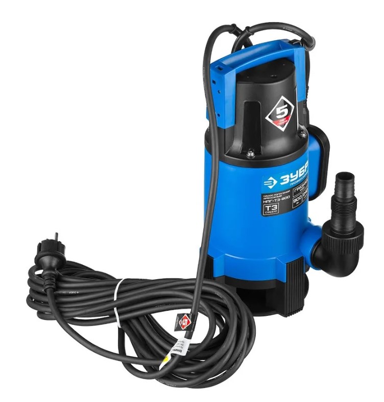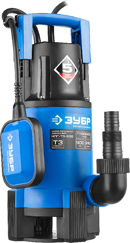 Дренажный насос для грязной воды ЗУБР Профессионал Т3 НПГ-Т3-900 предназначен для очистки колодцев и осушения затопленных помещений. Он подходит для непродолжительной работы. Для его функционирования требуется подключение к источнику питания.