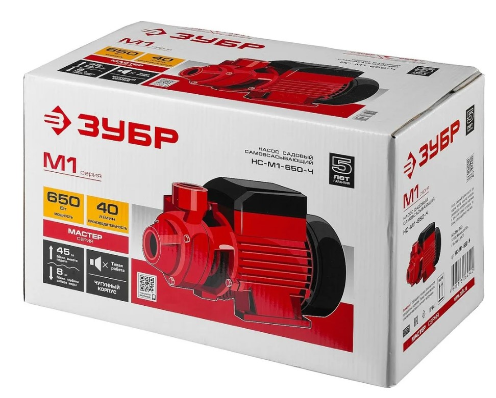 Поверхностный вихревой насос ЗУБР НС-М1-650-Ч мощностью 650 Вт предназначен для полива и орошения растений. Он способен перекачивать чистую воду из колодцев, скважин и водоёмов. Насос оснащён однофазным двигателем с защитой от перегрузки и может быть закреплён на поверхности благодаря отверстиям в основании.