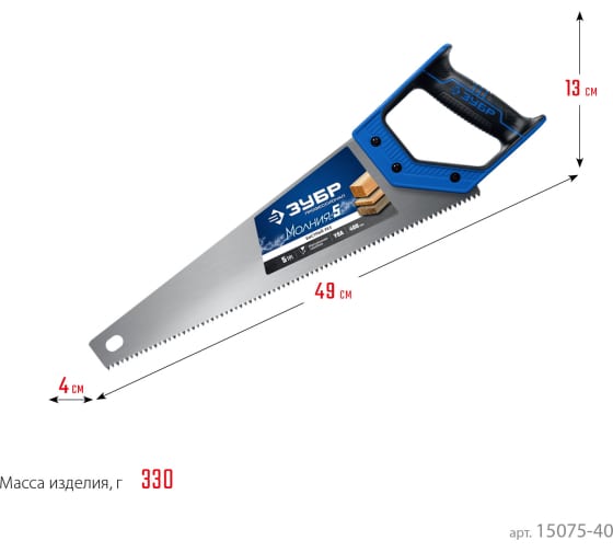 15075-40_z01 Ножовка по дереву (пила) ЗУБР МОЛНИЯ-5 400 мм, 5 TPI, прямой крупный зуб, быстрый рез поперек волокон, для крупных и средних заготовок