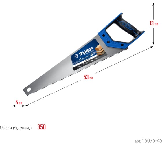 15075-45_z01 Ножовка по дереву (пила) ЗУБР МОЛНИЯ-5 450 мм, 5 TPI, прямой крупный зуб, быстрый рез поперек волокон, для крупных и средних заготовок