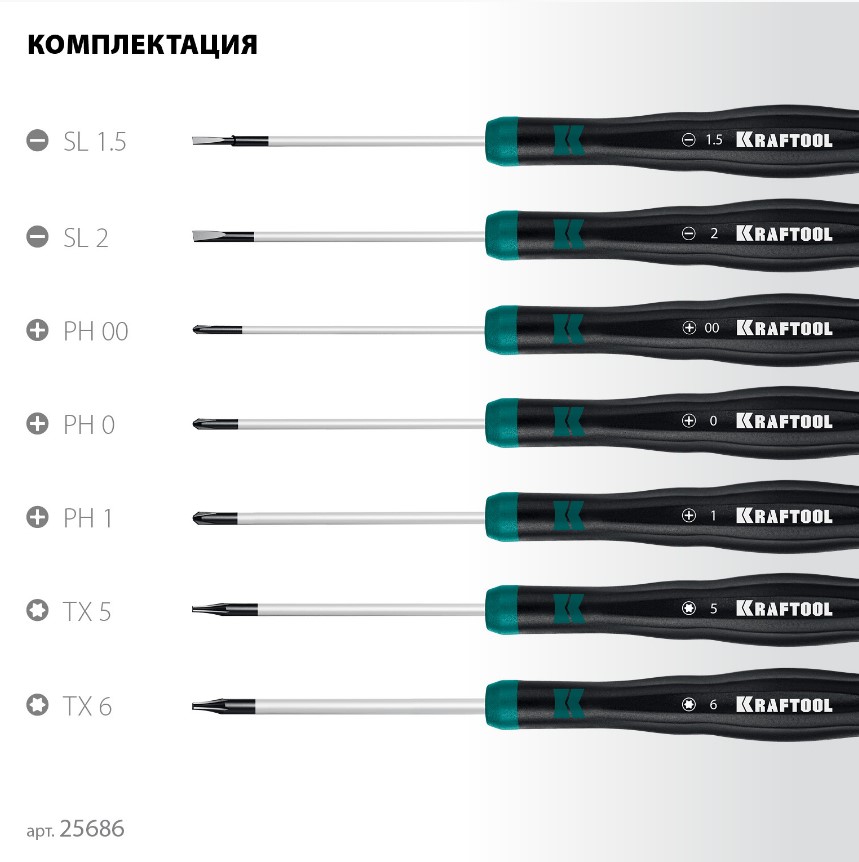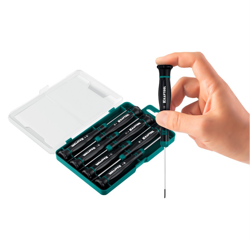 Набор профессиональных отверток используется для работ с мелкими деталями и для других точных механических работ