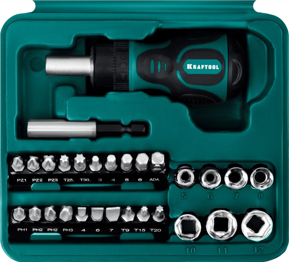 Профессиональный компактный набор KRAFTOOL предназначен для применения в комплекте с ручным и электроинструментом